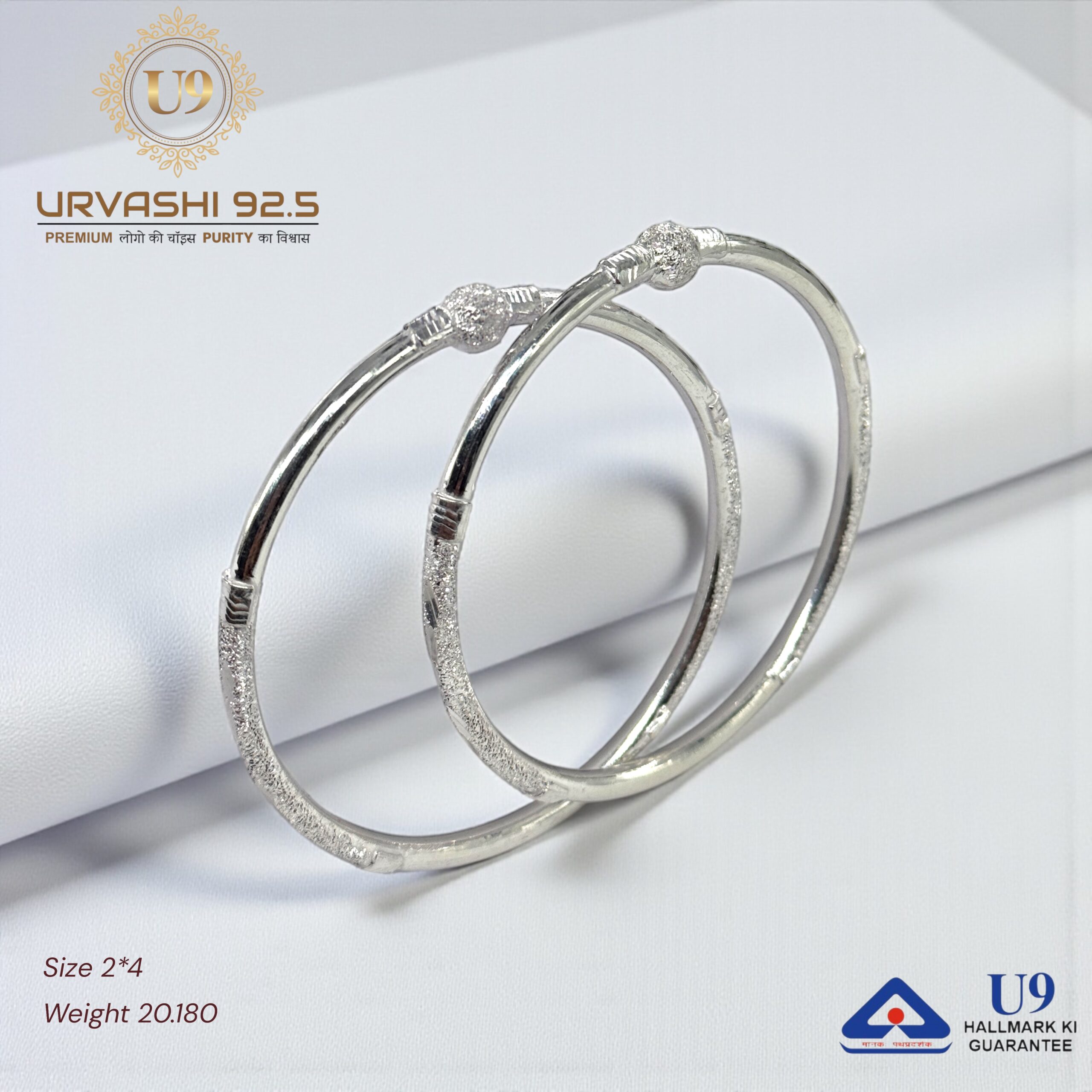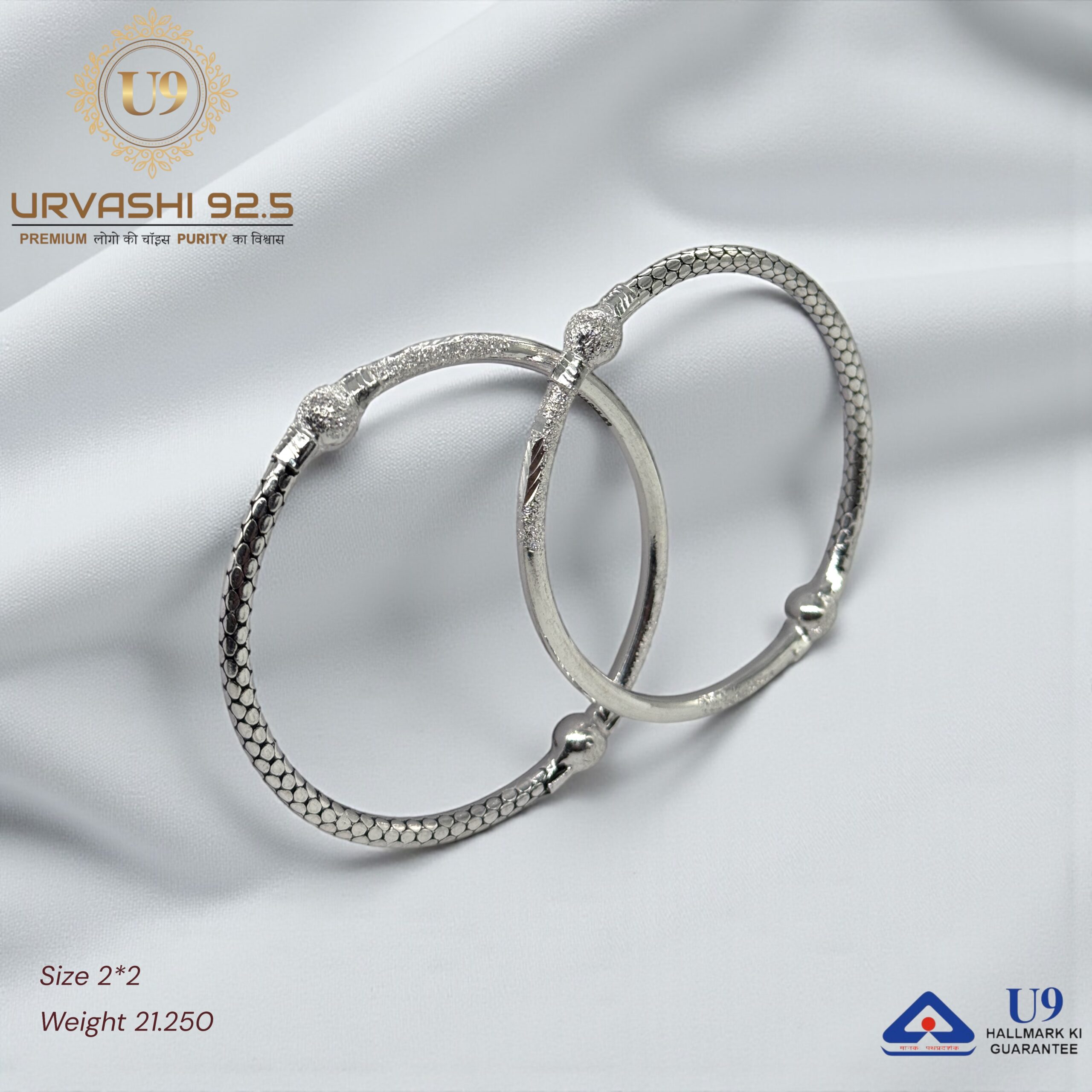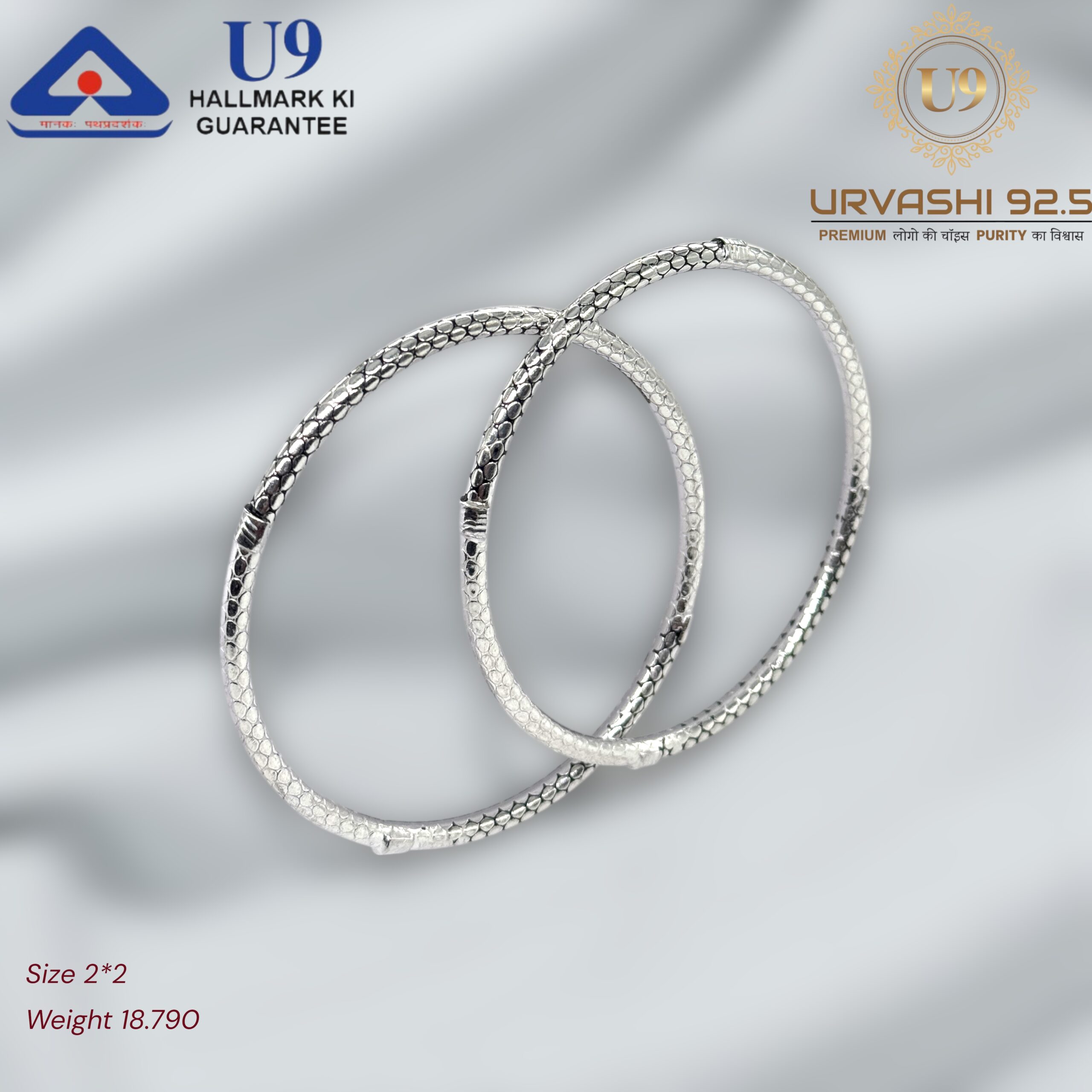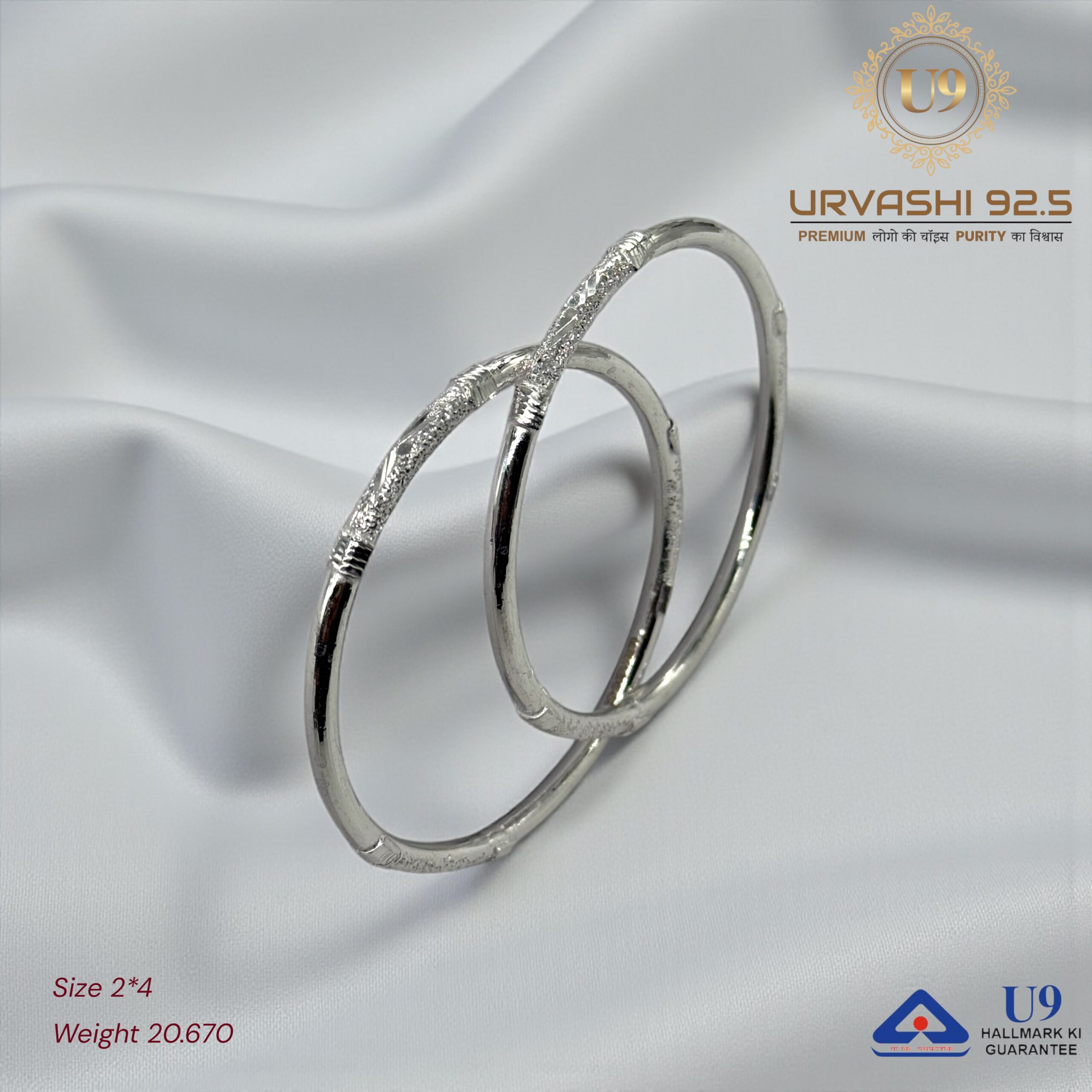 U93 URVASHI HALLMARK POKAL BANGLES January 20, 2025 by Purity 92.5 Size 2/2, 2/4, 2/6, 2/8, 2/10 Weight – Add to quote Category: BANGLES