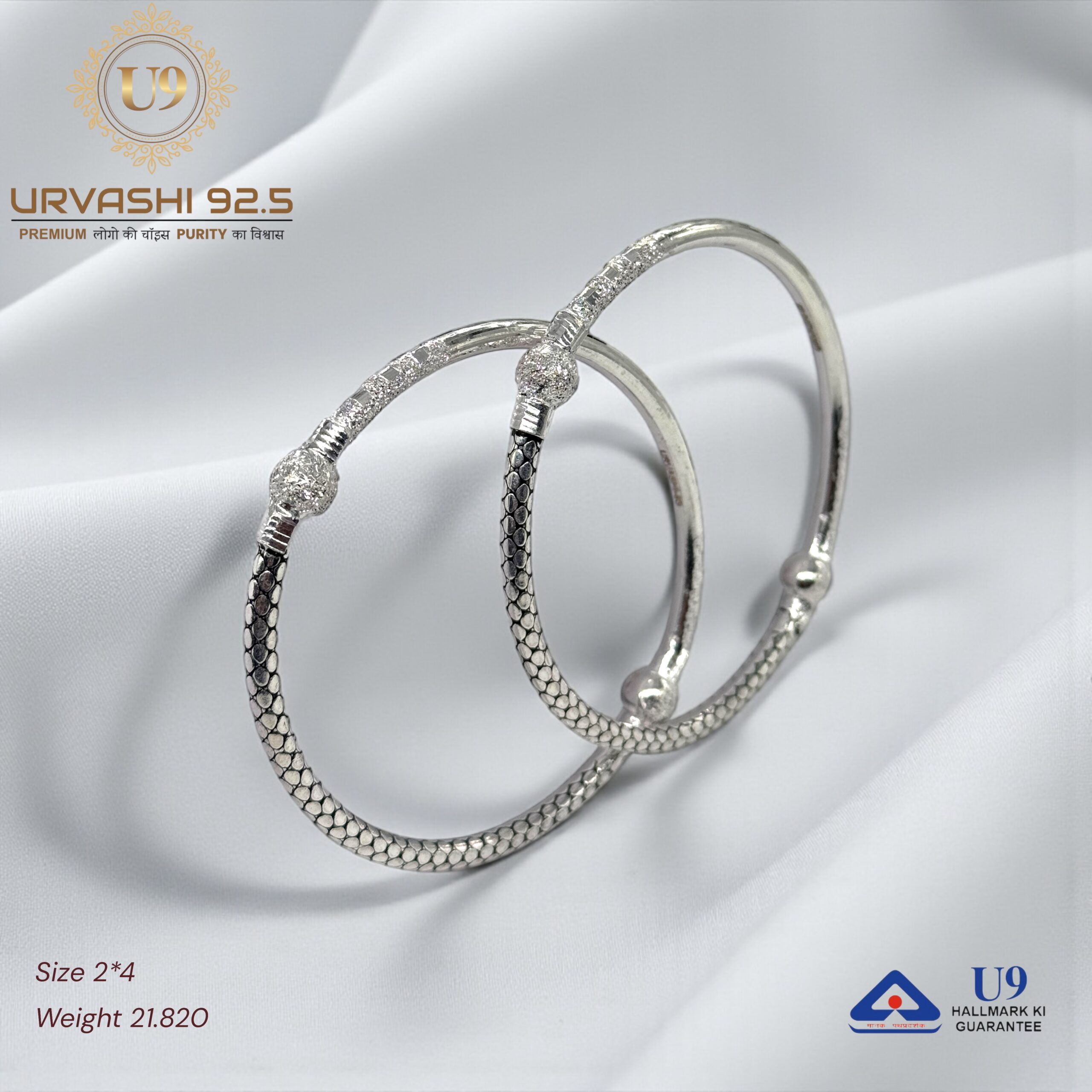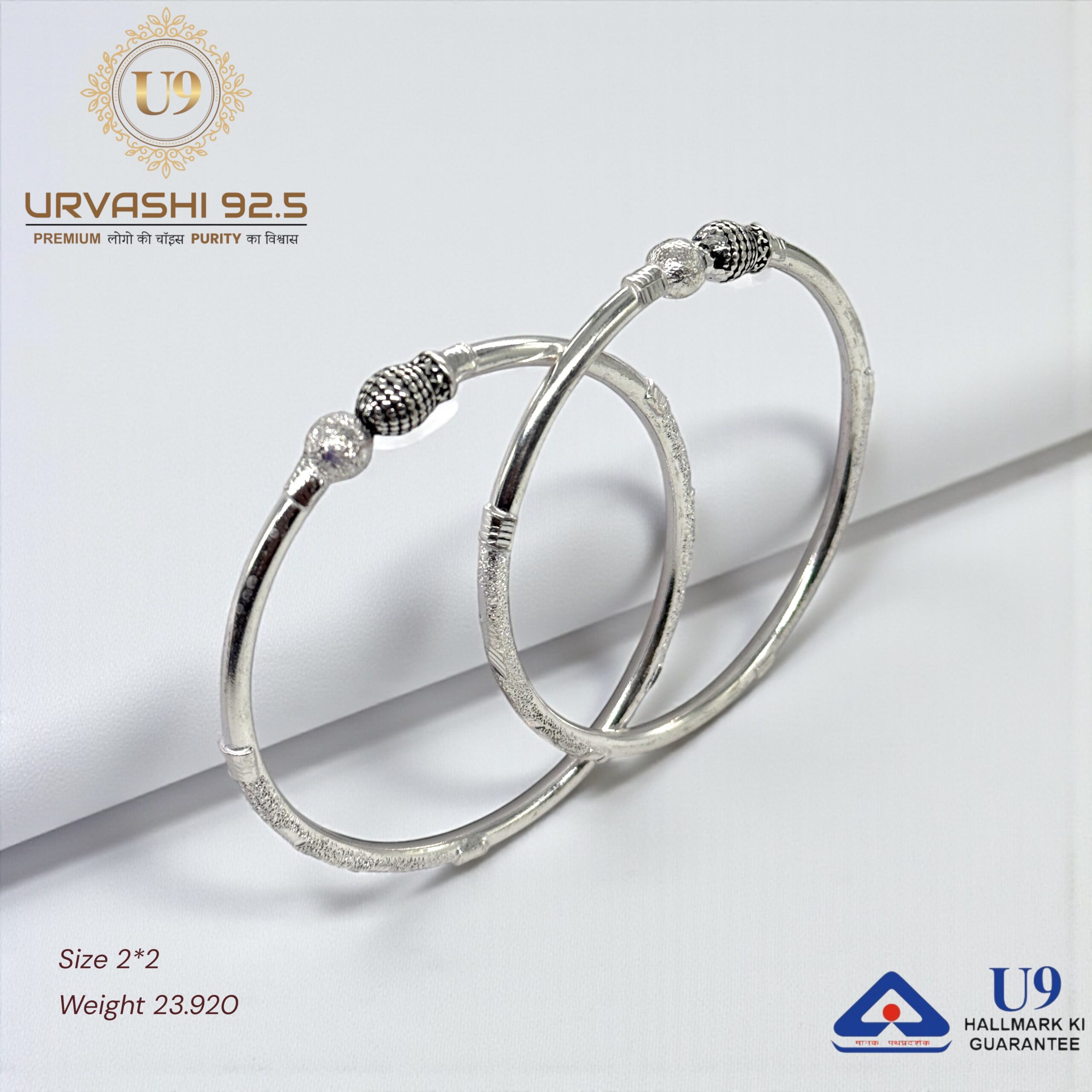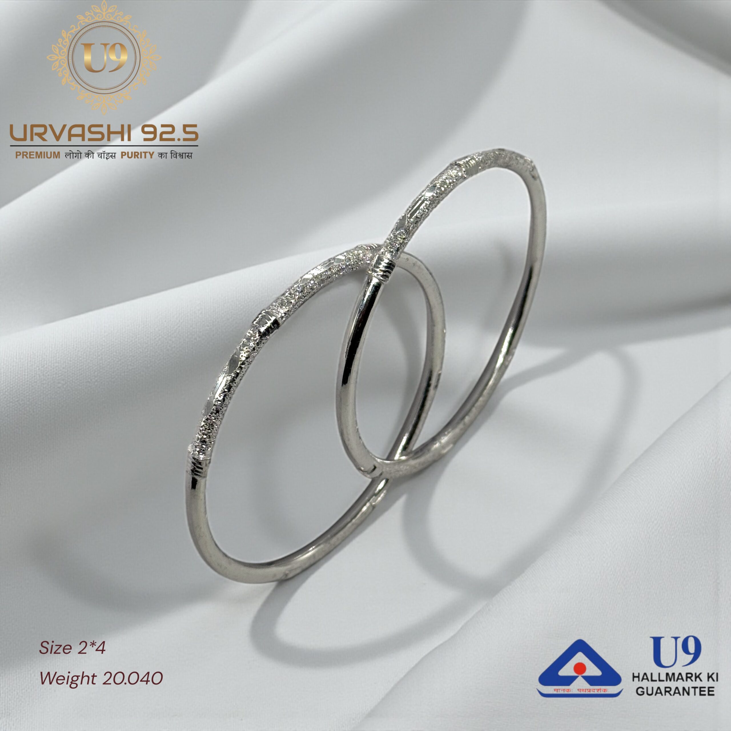 U93 URVASHI HALLMARK POKAL BANGLES January 20, 2025 by Purity 92.5 Size 2/2, 2/4, 2/6, 2/8, 2/10 Weight – Add to quote Category: BANGLES