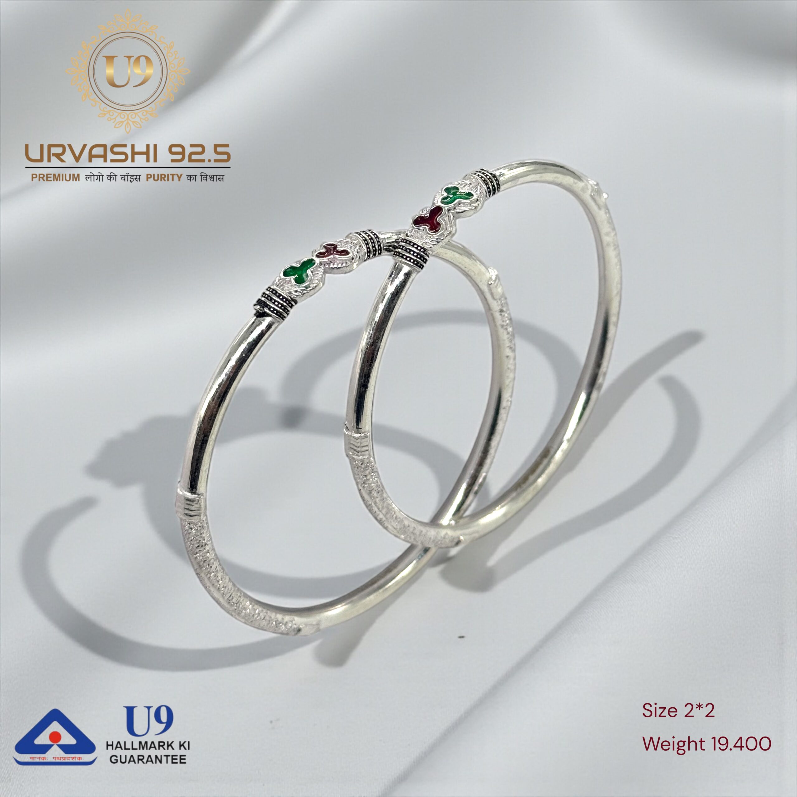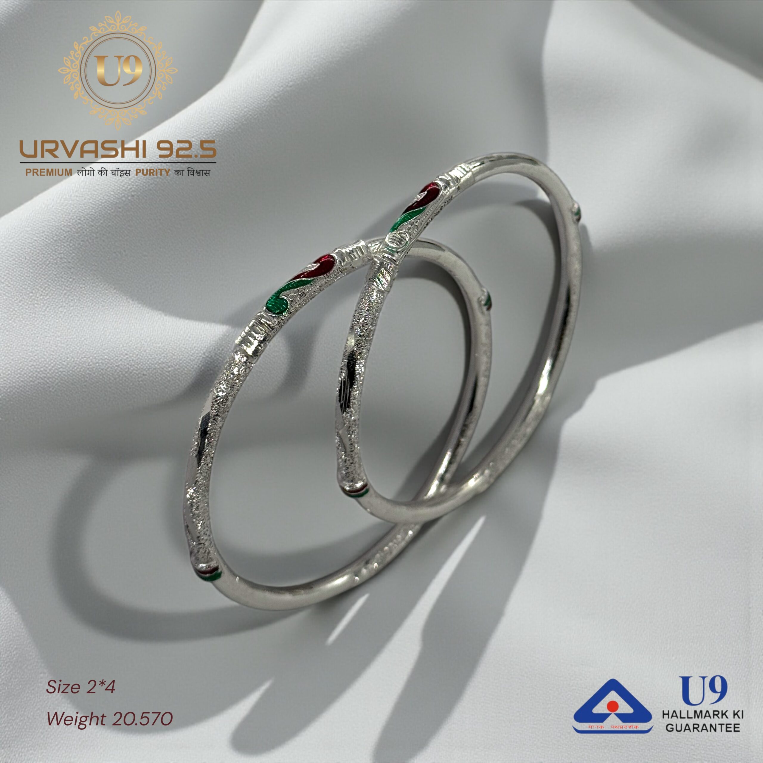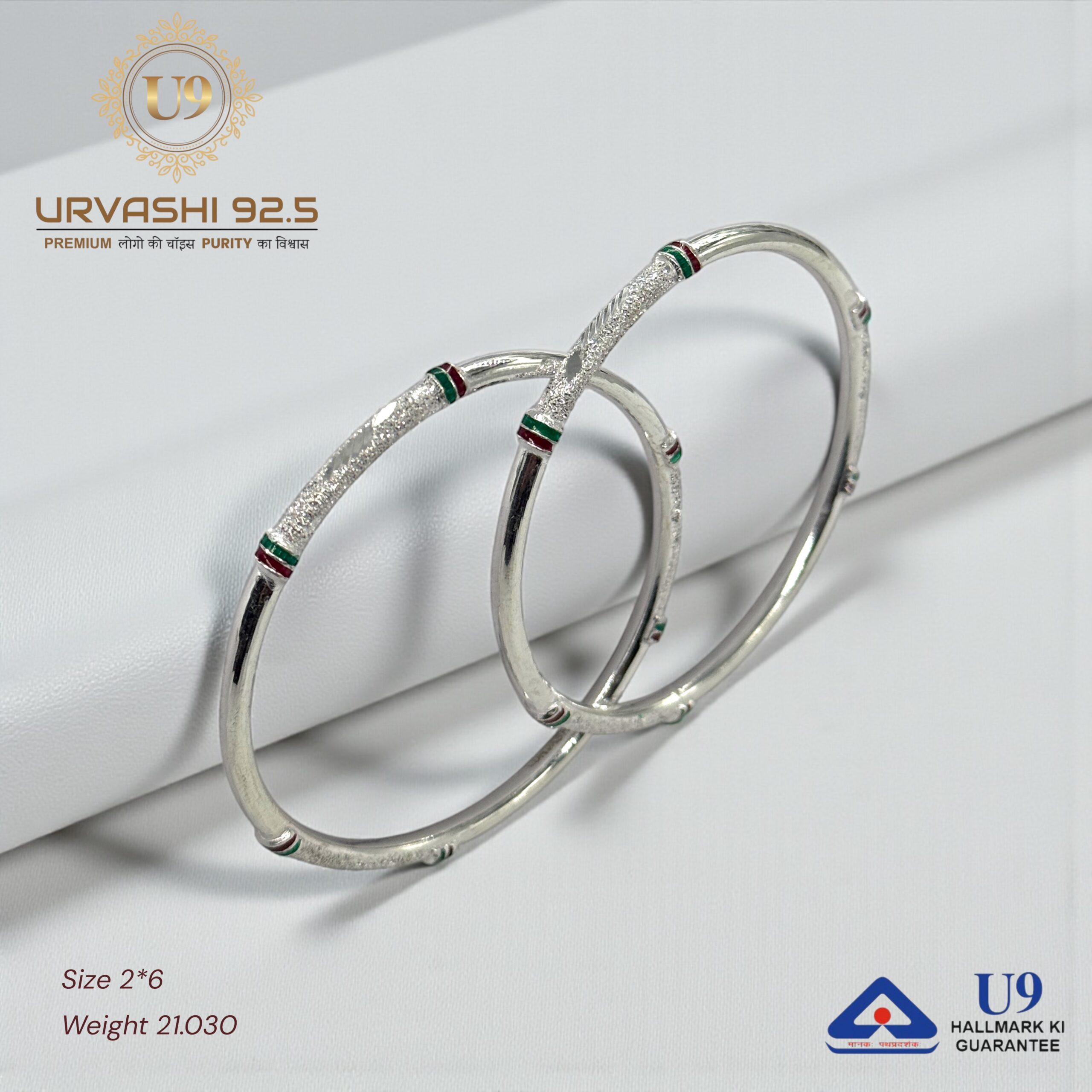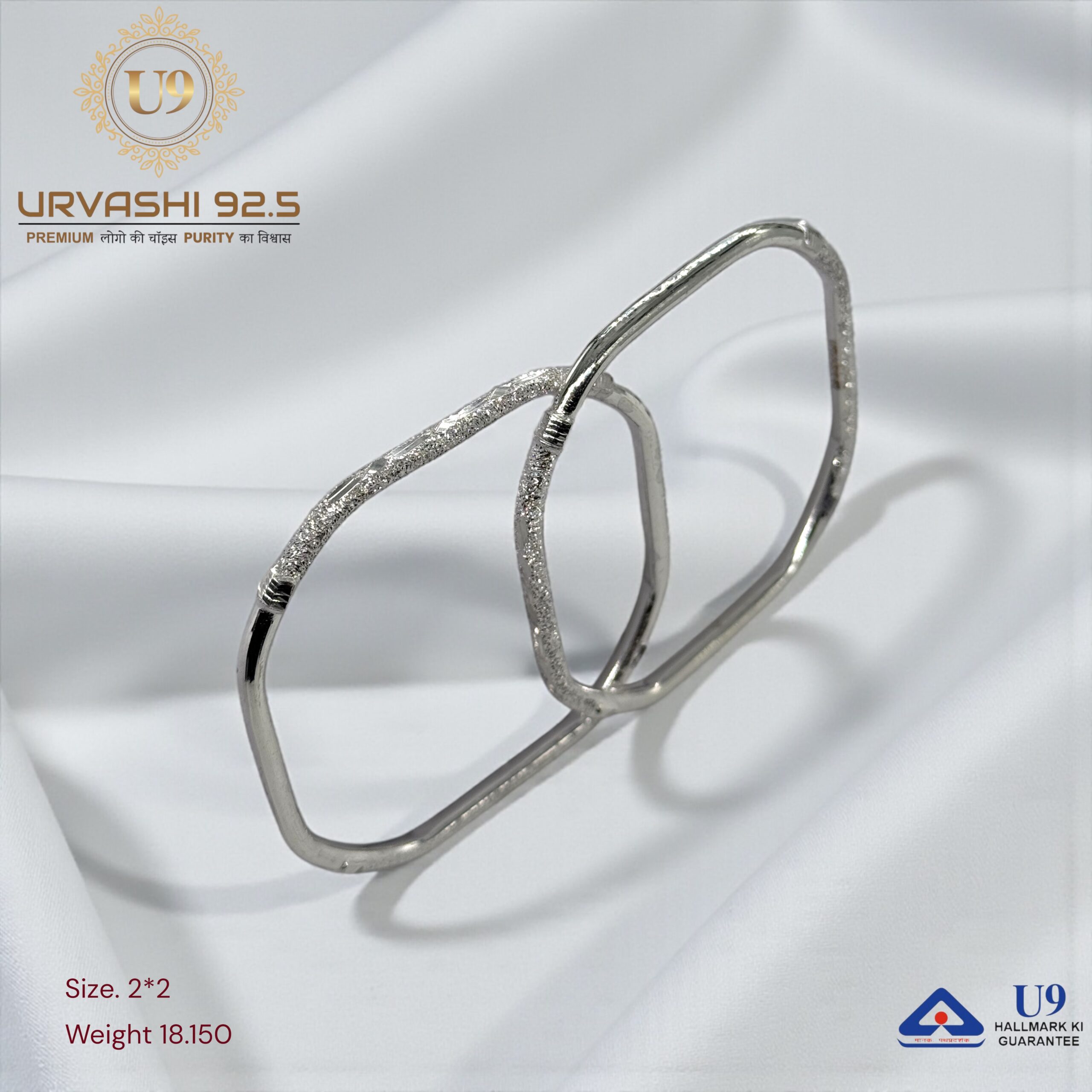U93 URVASHI HALLMARK POKAL BANGLES January 20, 2025 by Purity 92.5 Size 2/2, 2/4, 2/6, 2/8, 2/10 Weight – Add to quote Category: BANGLES